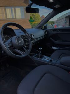 Het interieur van deze A3 werd grondig aangepakt: zetels, tapijten en dashboard mooi proper en weer fris.